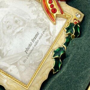 Gold tone/ Jeweled multicolor/ Square picture frame with red bow and ivy