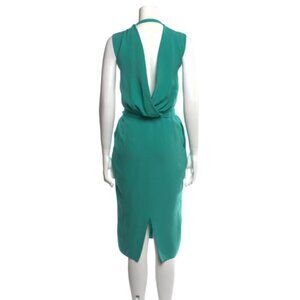 Costello Tagliapietra Blue Green Plunge Back Tie Waist Silk Midi Dress