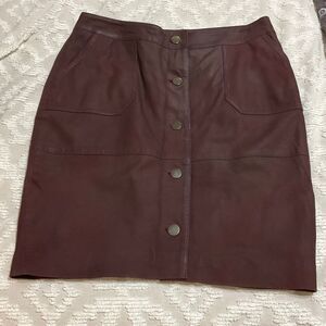 Coster Copenhagen Button Fron Mini with Visible Utility Pockets. Size 10 US, 40 EU. Flat lay W16” L 20”. burgundy oxblood 100% lamb leather fully lined. Gorgeous quality construction. Excellent condition. #richmom #euro #minimalist