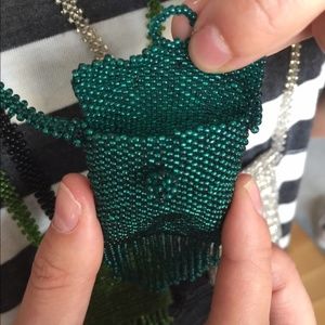 Costume Baldor Beaded Pouch Necklace Fringe Pocket Boho Midi