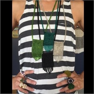 So unique! Can be used as a real pouch to keep a photo, trinket or secret something! Sourced and purchased in Mexico City by talented artists! Pouch is 1.75" W by 2.1" L ( not including tassels. Total necklace length is 16" L. Be prepared for the compliments to come your way! See 2 other listings for patterned pouches!