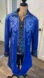 Royal blue velour coat with tails & a built in black waistcoat with scroll designs & 4 silver buttons.