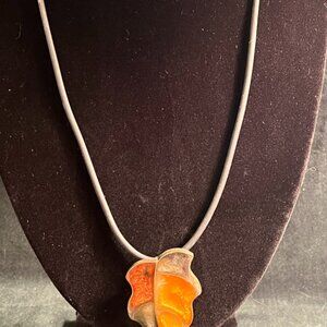 Necklace, corded, leaf-shaped pendant, cloissaine, brass metal backing, 24' long