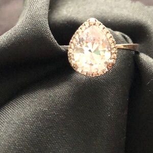 Costume Jewelry, pear shaped fake diamond on silver colored band.