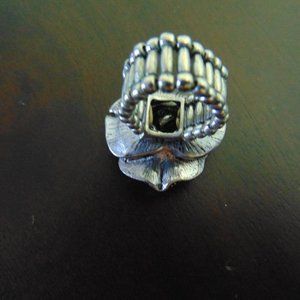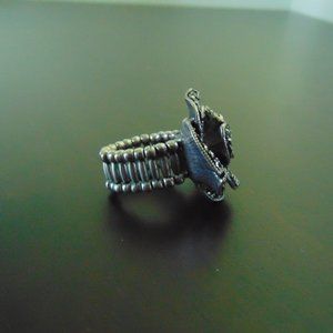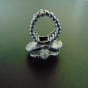 Beautiful flower ring in a great condition- no signs of wear but it has couple of very small beads missing, but not very visible. It stretches up to size 8.5. Very detailed and attention-grabber.