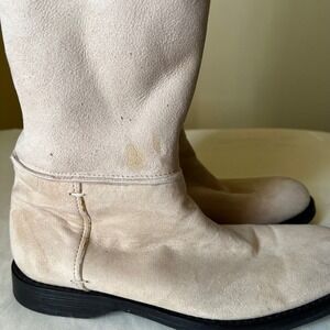 Beige suede leather upper with slouch shaft design
