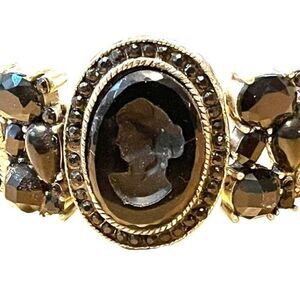 Costume Silver w/ Black Onyx Lucite Embossed Jewelry Bracelet Panels Stretch