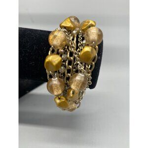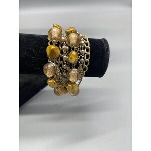 Costume jewelry Bracelet Gold Clasp Gold and Silver Beads Gold Chains 6.5" READ