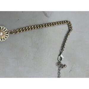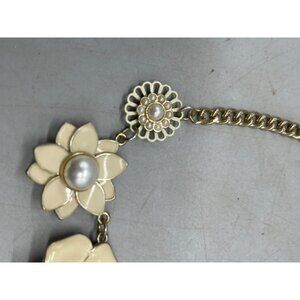 Costume jewelry necklace floral chain foe pearl ivory gold color clasp 19" READ