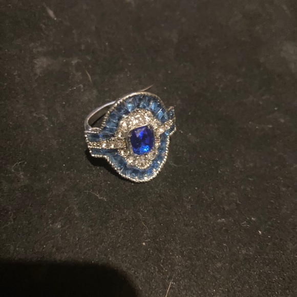 Blue and white stone costume ring. Silver toned. Never worn size 10