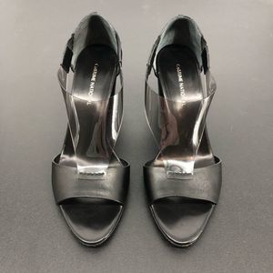 Costume National Leather Round Toe PVC Cutout Heeled Sandals