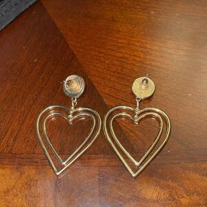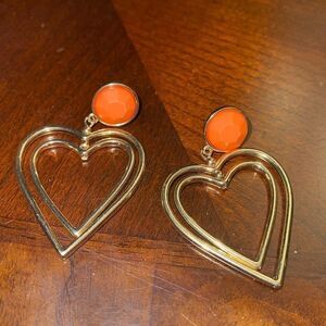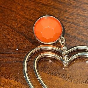 Costume double heart earrings with orange faceted bead deatail. Please see pictures for measurements.