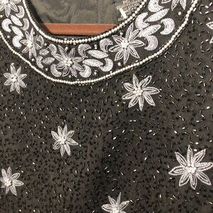 Cote D'Azur Evening vintage beaded embroidered crop top, back zip, 100% silk, size XL, measures approximately when laying flat: shoulder edge to shoulder edge 18", armpit to armpit 20", length at back 20"