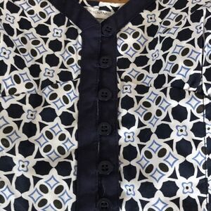 Cote Femme navy/white/blue print top, sz 10