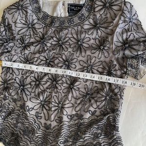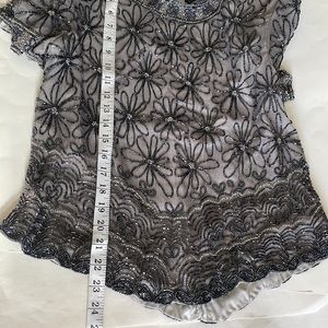 heavily beaded, short sleeve, scalloped hem, evening party top, has some signs of wear and loose threads on some area, overall still in good used condition