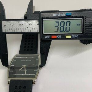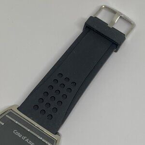 Cote d’ Azur men’s Watch silver black tone quartz analog 38mm case size , black silicone band in good condition battery installed