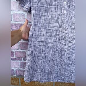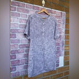 This dress is 100 % cotton feels gauzy style , has pockets, mother of pearl buttons, boxy style.