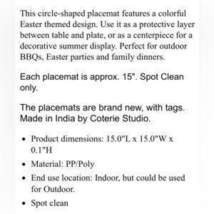 Coterie 2 Sets of 4 Floral Happy Easter Placemats NWT