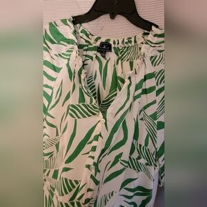 Cotil Co Green White Tropical Leaf Blouse 1X 3/4 Sleeve