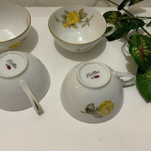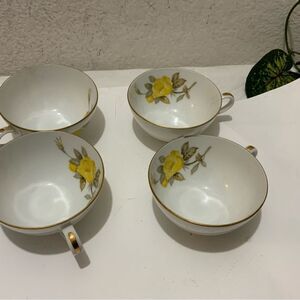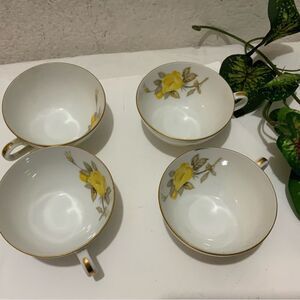 Cotillion Yellow Rose Gold Trim by Sango Japan Flat Wide Cup Set Of 4 Vi…