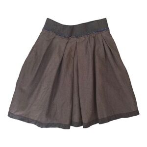Cotélac Box Pleat Virgin Wool Linen Blend A Line Skirt with Pockets