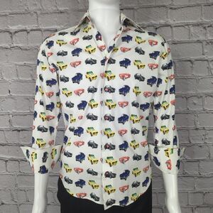 Fun classic car looks from Coton Doux, a European manufacture of fun men's clothing. Cotton fabric, great construction make for a high quality shirt that gets attention. Excellent pre-owned condition, measurements in images.