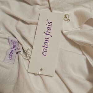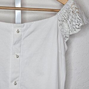 Coton Frais White Off Shoulder Top Lace Sleeve Pearl Button 100% Cotton S NWT