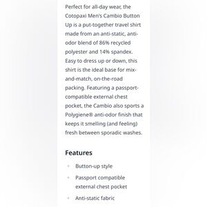 Cotopaxi Cambio Button Up Casual Shirt in Stripes in excellent used condition. No signs of wear. Perfect for travel, lightweight and so comfortable.