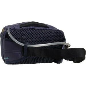 Lagos 5L Hydration Hip Pack by Cotopaxi. Color is "Graphite" - very dark blue with light blue detailing and darker green exterior lining. Convenient, lightweight and perfect for staying hydrated on the trail, this Cotopaxi Lagos 5-liter hydration hip pack is crafted from durable materials with a Hydrapak Shape Loc reservoir, a magnetic hydration tube connector, pockets for essentials and comfortable, padded carry.