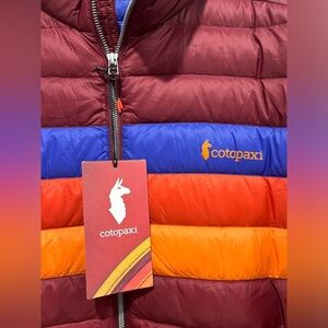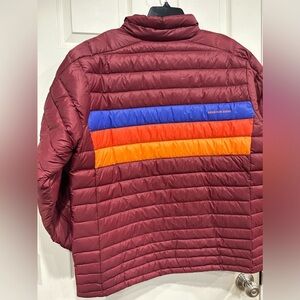 Cotopaxi Men's XL Fuego Down Jacket Burgandy Stripes NWT Nylon Shell Down 800