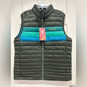 Cotopaxi Men's XL Fuego Down Vest Green Blue Woods Stripes NWT Puffy Puff Puffer