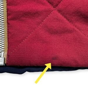 Great Condition! No rips, holes, or stains except one very small stain near zipper at waist shown in photos. Otherwise its in great shape!