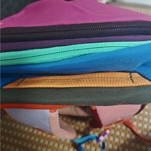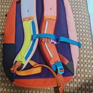 Vibrant Cotopaxi backpack with pink and orange tones. Ideal for daily use.