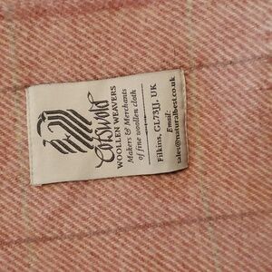 Cotswold Woolen Weavers Pink/Cream Wool 72"x54" Country Plaid Throw Blanket