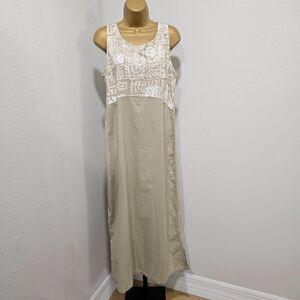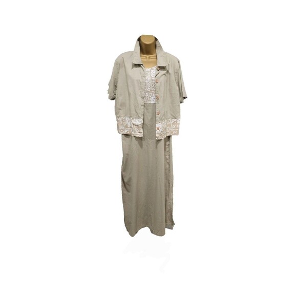 Cottage Coastal Grandma Modest Two Piece Tan White Jacket Tank Dress Womens Medium Excitation