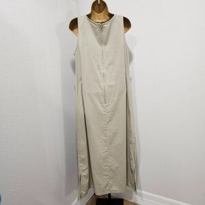 Cottage Coastal Grandma Modest Two Piece Tan White Jacket Tank Dress Womens Med