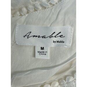 Cottage Core Amable White Eyelet Midi Dress With Puff Sleeves & Cut-Out Detail