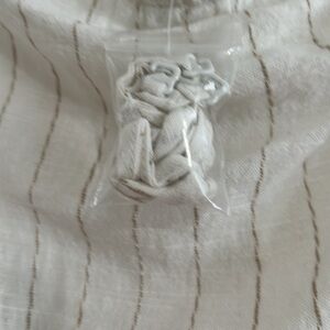 This is the cutest little lightweight linen blend wide leg strapless jumpsuit ever. It is of course elasticised around the top and the waist also has the elastic in it with a beautiful tan and white cinch cord and tan and white tassels.. the fabric is 55% linen 45% cotton. You can wear it to Waze with or without the straps. And bonus it has pockets! So cute and comfortable for summer..