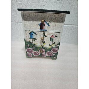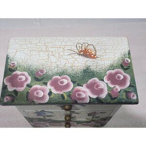 Cottage Core Painted Jewelry Chest Drawers Crackle Birds Flowers Butterfly