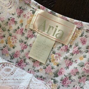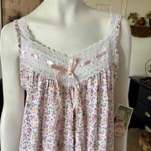 Cottage Core Pink Floral Satin Ribbon Lace Sleeveless Nightgown Aria NWOT