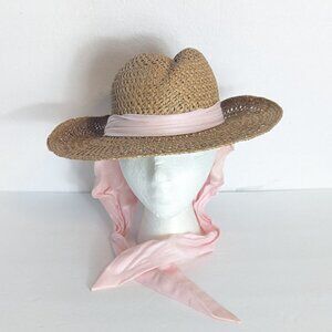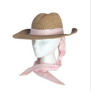 Cottage Core Straw Hat Neck SPF Scarf Sun Protection UPF Beach Coastal Boho Wide Brim. Great condition. Has a built-in scarf. One adult size