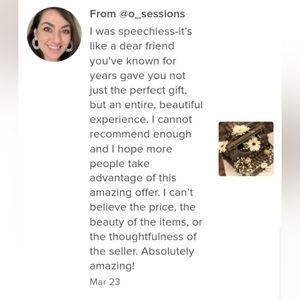 I love knowing your favorite colors, favorite materials, and general interests. You may be interested in getting a box of clothing items . You might be interested in receiving a home decor box or just want to be completely surprised!!! We can have a little chat through messages to discuss what makes you feel worm and fuzzy inside π