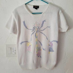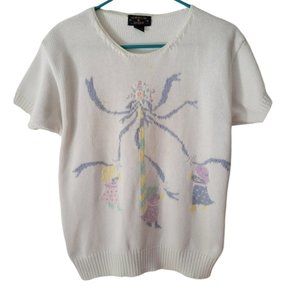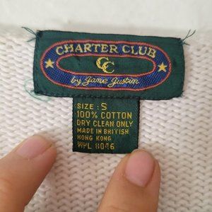 Cottage Core Vintage Charter Club Knit Sweater Small 100% Cotton Embroidered