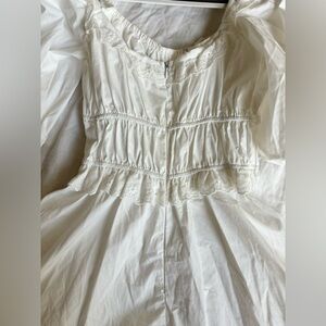 Chic and elegant, this white mini dress features stylish puff sleeves and delicate ruffle details. Perfect for any occasion.