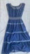 Stunning lapis blue chambray tiered maxi dress with beautiful embroidered neckline and smocked waist detail. Features adjustable tie front, flutter cap sleeves, and flowing bohemian silhouette with multiple tiers.