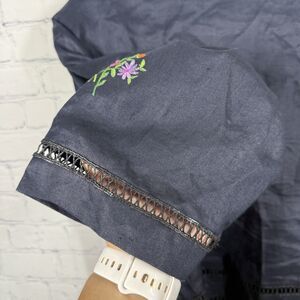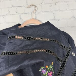 Cottage Tunic Women Plus Size 2X Blue Floral Embroidered Linen Blend Boho Jacket