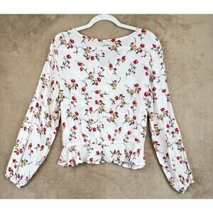 Cottage Western Floral Top Womens XL Cinch Waist Ruffle Hem Milkmaid Peasant