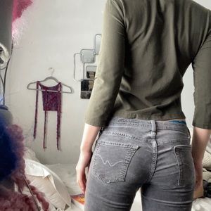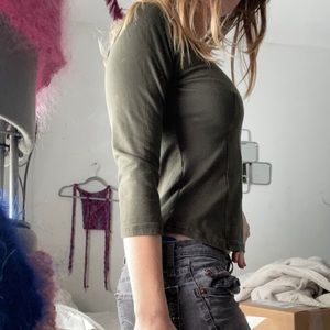 Cottage core fairy moss green quarter sleeve lace trim top doesn’t say size but shown on a size small