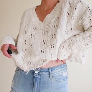 Cottagecore Crop Chunky Cable-Knit Sweater