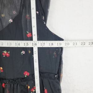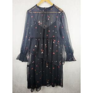Cottagecore Dress Large Midi Sheer Line Long Sleeve Black Floral Asymmetric Layers